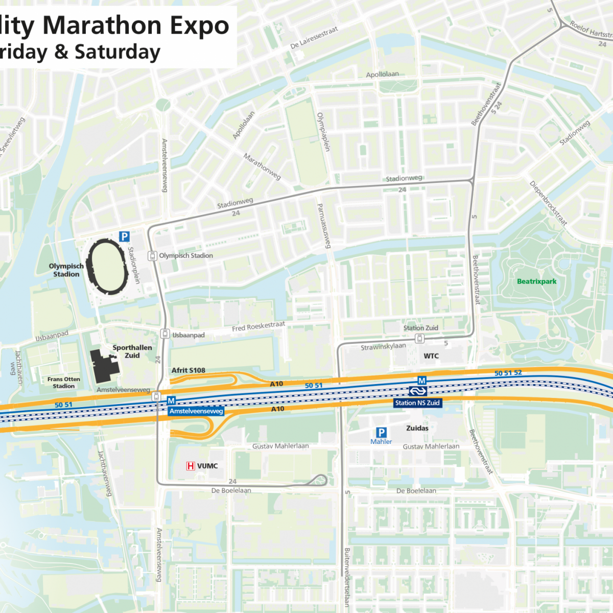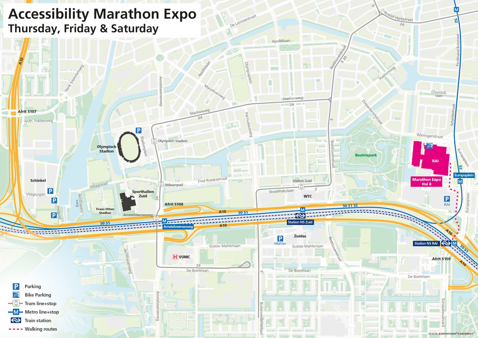 The nearest metro stations are Station NS RAI or Station Zuid (lines 50 or 51). From here, signs will guide you to RAI Amsterdam. For up-to-date travel information, visit