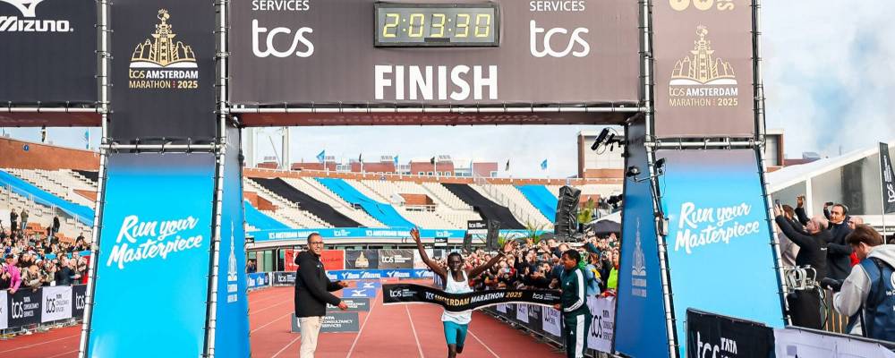 Kipchumba triumphed in the jubilee edition of the TCS Amsterdam Marathon, setting a new course record of 2:03:30. The fourth-fastest marathon time in the world this year. The 25-year-old Kenyan ran an attacking race, crushed his personal best, and erased Tamirat Tola’s previous record (2:03:39) from the books. Among the women, Ethiopia’s Aynalem Desta took victory in 2:17:37, while Khalid Choukoud and Anne Luijten were crowned Dutch marathon champions after an exciting race.The start list featured several big names, including Olympic champion Joshua Cheptegei and Gabriel Gaey. A new course record seemed likely, but Kipchumba’s victory still came as a surprise. Up to the halfway mark along the Amstel River, a large lead group stayed together behind a single pacemaker. They passed the halfway point exactly on record pace, after which the tempo increased further. A clear split followed, but the favourites remained in the mix, and calm briefly returned to the group.