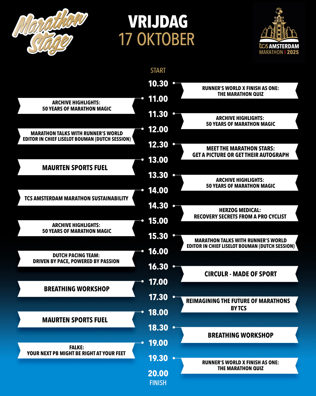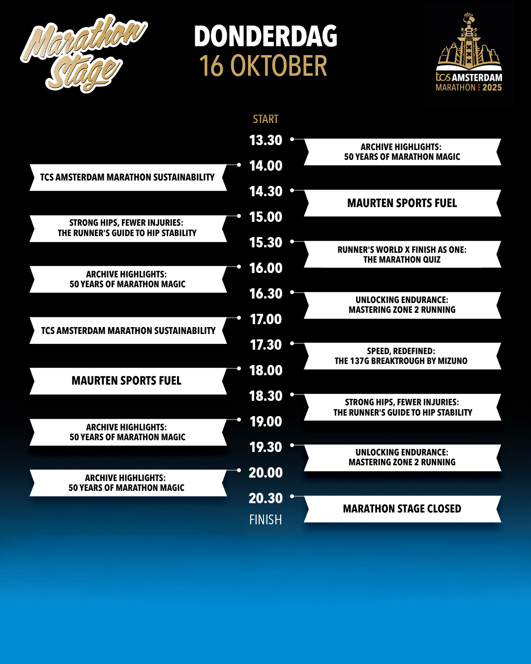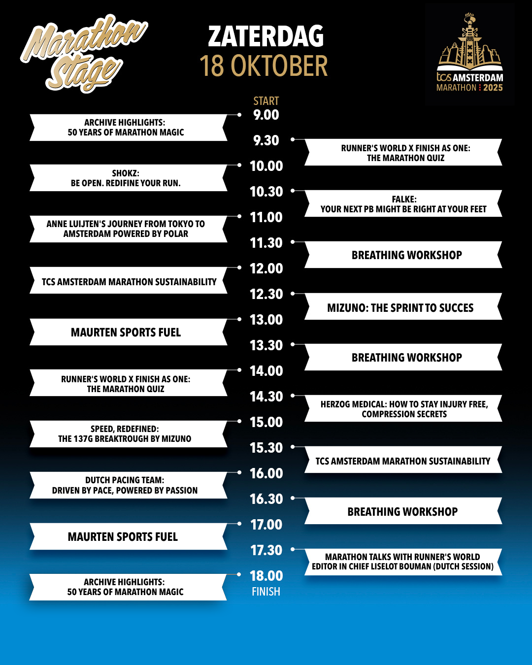 The Paris-based artist and typographer from Amsterdam explains his striking design: 'I created 3 typographic mono-line designs for the official merchandise: 'Keep Going', 'Good Luck' and 'Am Star Dam'. Everyone who runs the marathon gets the time to shine and is therefore a 'Star'. I see life itself as a marathon and everything you want to succeed in. By being persistent, keep training and keep going with full focus. Enjoy your journey to become a better person, runner, artist or entrepreneur,' Ceizer said.